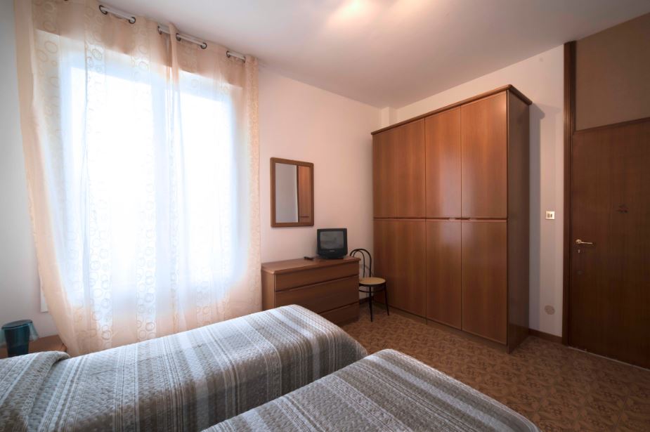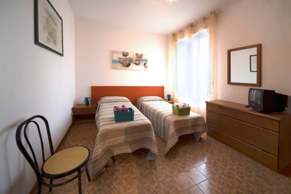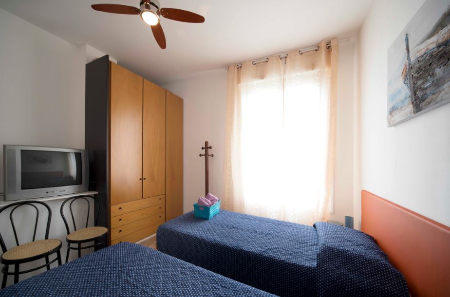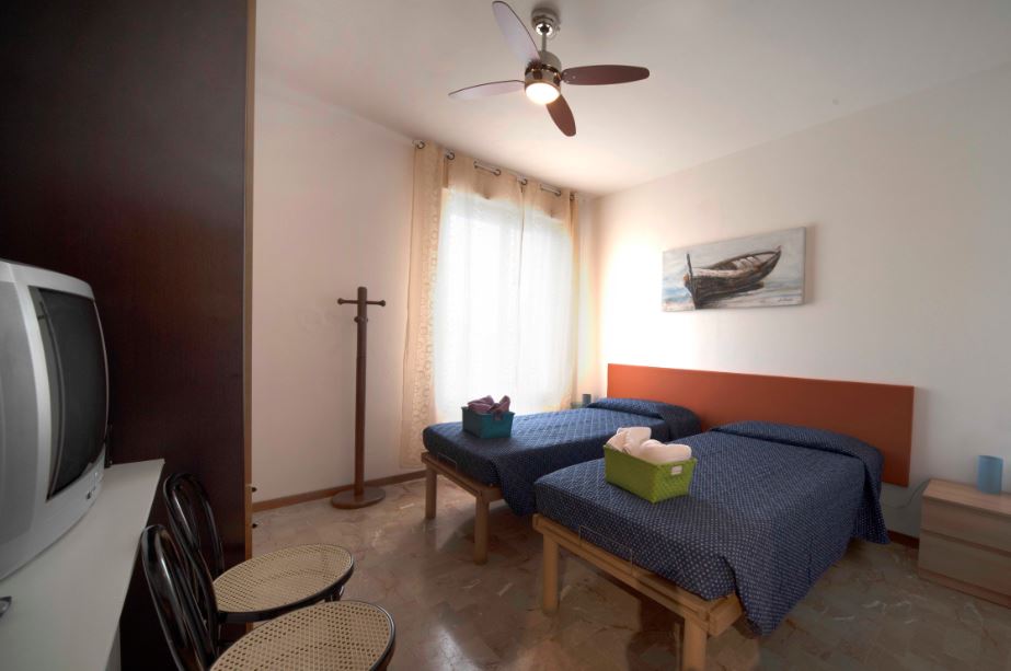 Due camere doppie, di cui una con TV, ventilatore a soffitto, due comodi letti a doghe reclinabili con possibilità d’unione per matrimoniale, ampio armadio, specchio e zanzariera, ed una con TV, due comodi letti a molle ed ampio armadio con specchio, settimino e zanzariera.