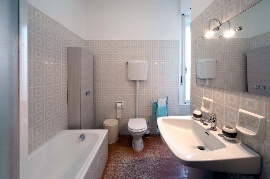 Le camere condividono il bagno con accessori, possibilità doccia con idromassaggio o vasca e bagno di servizio con doccia.