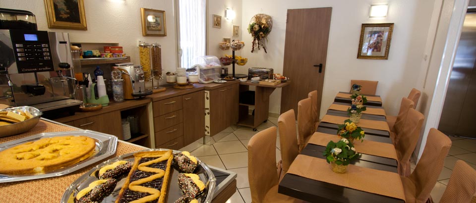 L’hotel dispone di un salone arredato con eleganza e di una bellissima sala colazione.